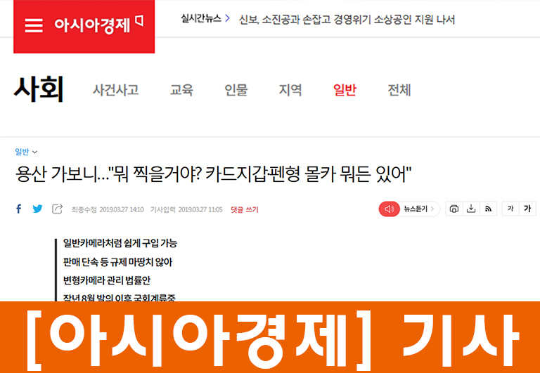 안녕하십니까, 프로정보통신입니다. 최근 몰카범죄 관련해서 인터뷰 요청이 있었습니다. 몰카관련 문제 확인하시고, 많은 도움 되시기 바라겠습니다. 감사합니다~ ^^ http://http://view.asiae.co.kr/news/view.htm?idxno=2019032710151845278